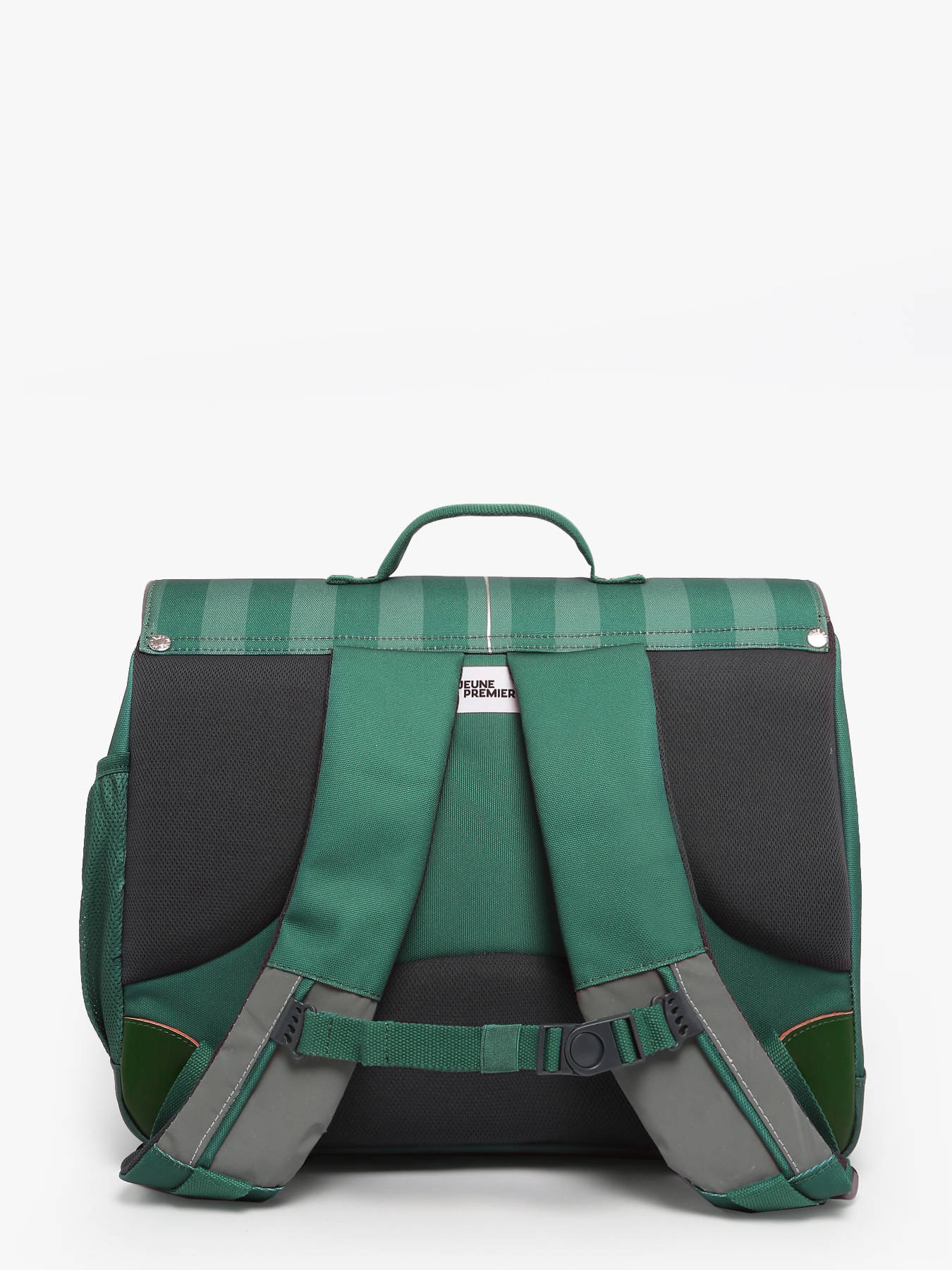 38 cm - 17.1 litres - 1.1 kg ~ Ce cartable JEUNE PREMIER à 2 compartiments est idéal pour les enfants de 6 à 8 ans, filles comme garçons. Fabriqué en polyester robuste, il accompagne les journées d’école avec confort et fonctionnalité. À l’extérieur, il dispose d’une poche avant pratique, d’une poche latérale pour gourde ou petit objet, et se ferme facilement grâce à un rabat équipé d’un fermoir sécurisé. Les bretelles réglables et la poignée assurent un port ergonomique, au dos ou à la main. L’intérieur se compose de deux compartiments spacieux, d’une poche zippée et peut accueillir un dossier A4, un cahier 24x32 cm et un classeur A4.
